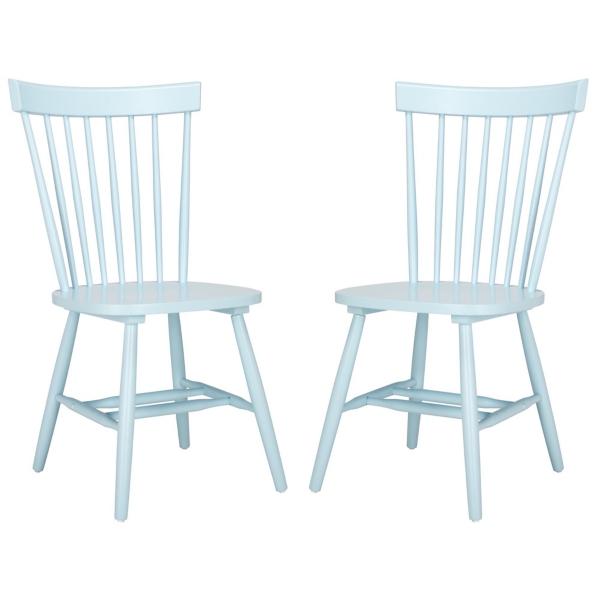 You'll love the classic charm of these Pale Blue Parker Spindle Dining Chairs! Their timeless elegance makes them perfect for a simple yet eye-catching upgrade to your dining room. Set includes two (2) dining chairs Each chair measures 20.5W x 21D x 36H in.; seat height: 17.3 in. Crafted of wood Pale blue finish Spindle backrest design Weight: 22 lbs. Weight capacity: 225 lbs. Assembly required Not intended for commercial use Care: Wipe with a soft, dry cloth. This item is available at Kirklands.com only, not available in stores. Please note: this item cannot be shipped to APO/FPO addresses.