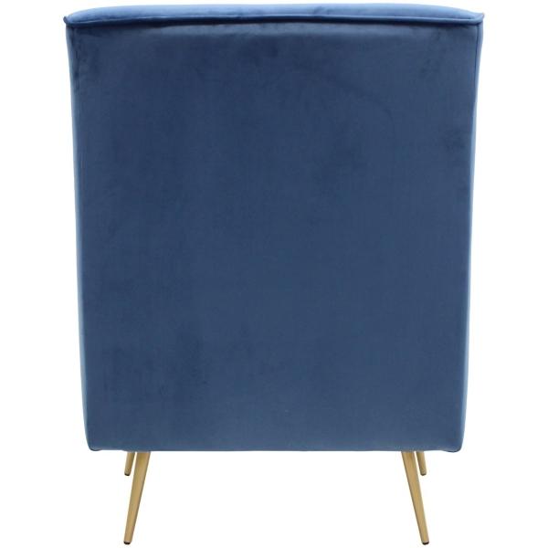 Elevate your space with this Parisian Blue Velvet Lana Accent Chair! Featuring a mid-century modern silhouette and chic finishes, this chair will bring style and comfort to any room! Chair measures 25.5L x 27W x 34.5H in.; seat height: 18 in. Crafted with a wood and metal frame Upholstered in polyester and filled with high-density foam Gold leg finish Blue upholstery finish Features a velvet upholstery feel Crafted with sustainable materials Weight capacity: 250 lbs.; weighs 29 lbs. Minimal assembly required Made in the United States Not intended for commercial use Care: Spot clean. This item is available at Kirklands.com only, not available in stores. Please note: this item cannot be shipped to APO/FPO addresses.