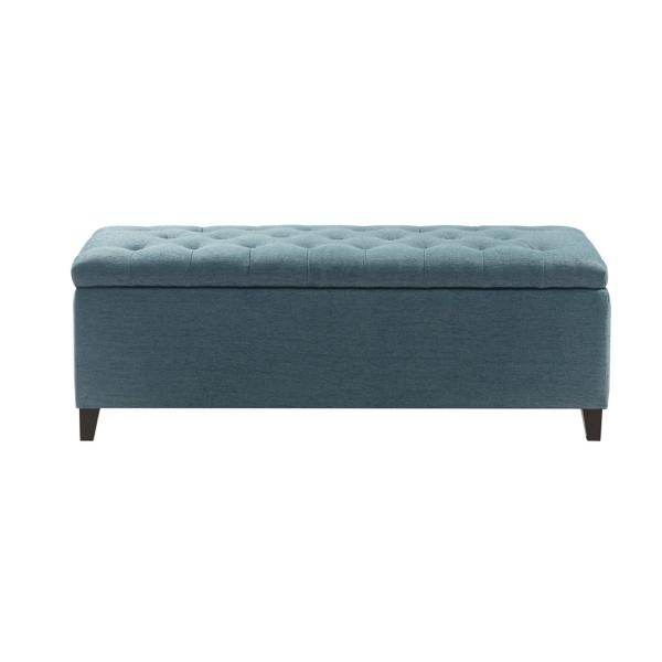 Fashion and function come together beautifully in our stunning Peacock Blue Button Tufted Storage Bench. You’ll love the vibrant blue upholstery and spacious storage compartment. Bench measures 49L x 19.25W x 18.5H in. Crafted with a wood and wood composite frame Birch legs with espresso finish Upholstered in a 100% polyester blue fabric with high density foam fill Features storage compartment Storage compartment interior measures 44.5L x 15W x 11H in. Features button tufted detailing Weight: 34.1 lbs. Weight capacity: 300 lbs. Leg assembly required Not intended for commercial use Care: Spot clean only. This item is available at Kirklands.com only, not available in stores. Please note: this item cannot be shipped to APO/FPO addresses. WARNING: Cancer and Reproductive Harm - For more information go to www.P65Warnings.ca.gov.