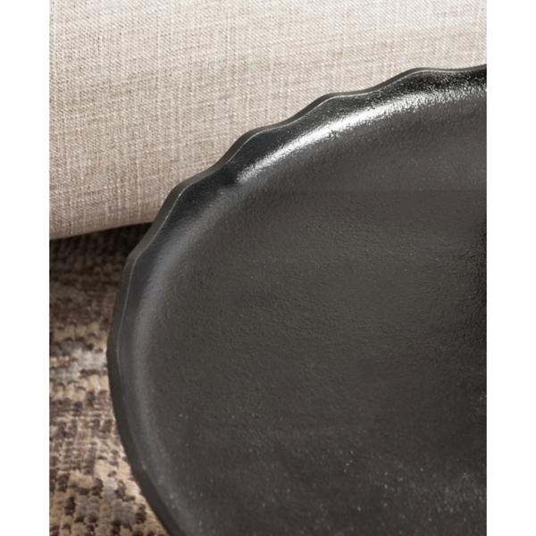This Round Black Alessia Coffee Table brings an elevated sense of modern craftsmanship to your home. It stands out due to its modern black finish and beautiful, sand-cast texture, hand crafted to make each piece distinct. Table measures 15.75H x 26 in. in diameter Crafted of aluminum Black finish Round shape Features a deckled edge Sand-cast texture Weight capacity: 100 lbs. Assembly required Not intended for commercial use Care: Dust with a soft, dry cloth. This item is available at Kirklands.com only, not available in stores. Please note: this item cannot be shipped to APO/FPO addresses. WARNING: Cancer and Reproductive Harm - For more information go to www.P65Warnings.ca.gov.