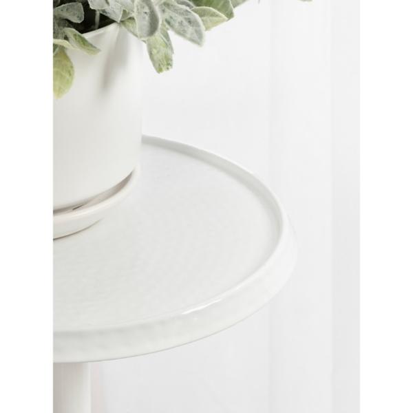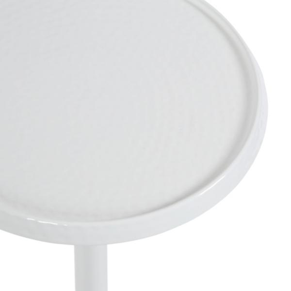 Decorate your home with the unique style of this Round White Metal Layla Accent Table. With a modern look and compact size, it's perfect for displaying your favorite plant or holding a drink or two! Overall dimensions Width: 9" Depth: 9" Height: 23" Crafted of metal White finish Round tabletop Hammered texture Weight: 4.5 lbs. Weight capacity: 7 lbs. Assembly required Not intended for commercial use Care: Dust with a soft, dry cloth. This item is available at Kirklands.com only, not available in stores. Please note: this item cannot be shipped to APO/FPO addresses. WARNING: Cancer and Reproductive Harm - For more information go to www.P65Warnings.ca.gov.