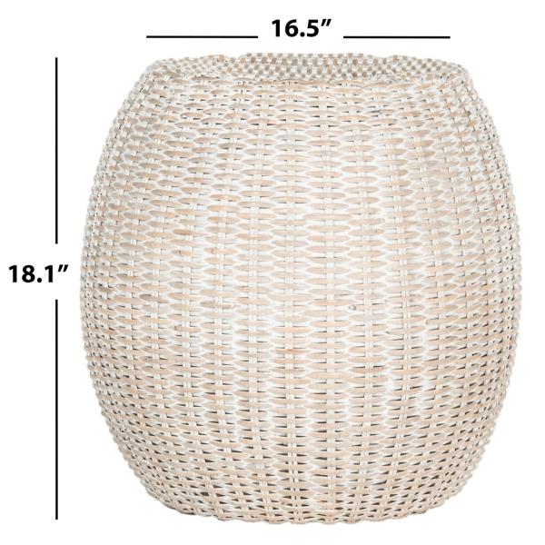 Refresh any modern interior with this effortlessly chic Round White Rattan Barrel Accent Table. An ideal accent piece for any room, its woven texture and warm finish give this table a classic wicker look! Overall dimensions Width: 16.5 in. Depth: 16.5 in. Height: 18.1 in. Crafted of rattan White finish Round barrel shape Woven design Weight: 5.9 lbs. Weight capacity: 15 lbs. No assembly required Not intended for commercial use Care: Dust with a soft, dry cloth. This item is available at Kirklands.com only, not available in stores. Please note: this item cannot be shipped to APO/FPO addresses.