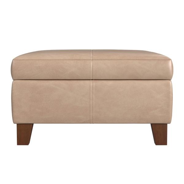 Elevate your living space with this stylish and multifunctional Sand Faux Leather Large Square Storage Ottoman! Whether you're organizing or adding extra seating to your space, this faux leather ottoman is a must-have piece for your home. Ottoman measures 28L x 28W x 15.75H in. Crafted with a wood and metal frame Upholstered in tan faux leather Mid-tone walnut wood leg finish Features a safety-hinged lift up lid Durable faux leather Weight: 31 lbs. Weight capacity: 250 lbs. Assembly required; see Info & Guides in the drop down below to view or print assembly info Not intended for commercial use Care: Wipe clean. This item is available at Kirklands.com only, not available in stores. Please note: this item cannot be shipped to APO/FPO addresses.