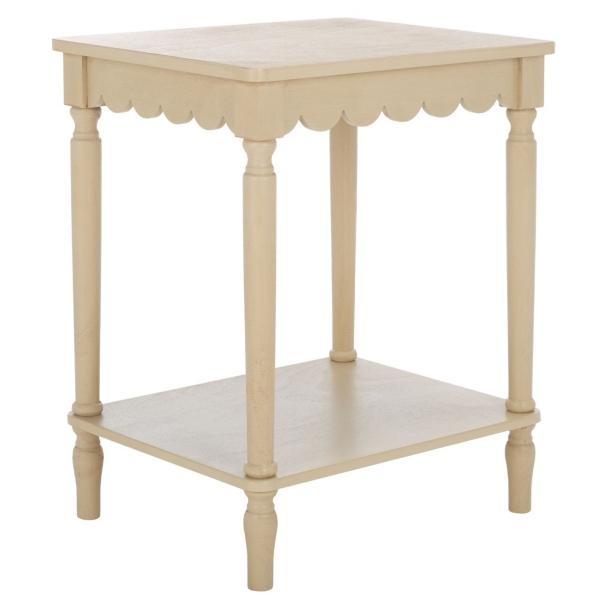 Add a delightfully charming touch to any corner with this Scalloped Natural Wood Cottage Accent Table! This side table is perfect for a lamp or for displaying favorite decorative accessories. Accent table measures 19.5W x 15.7D x 24H in. Crafted of wood Natural finish Features one (1) lower shelf Scalloped apron Weight: 11 lbs. Weight capacity: 40 lbs. Some assembly required; see Info & Guides in the drop down below to view or print assembly instructions Not intended for commercial use Care: Wipe with a soft, dry cloth. This item is available at Kirklands.com only, not available in stores. Please note: this item cannot be shipped to APO/FPO addresses.