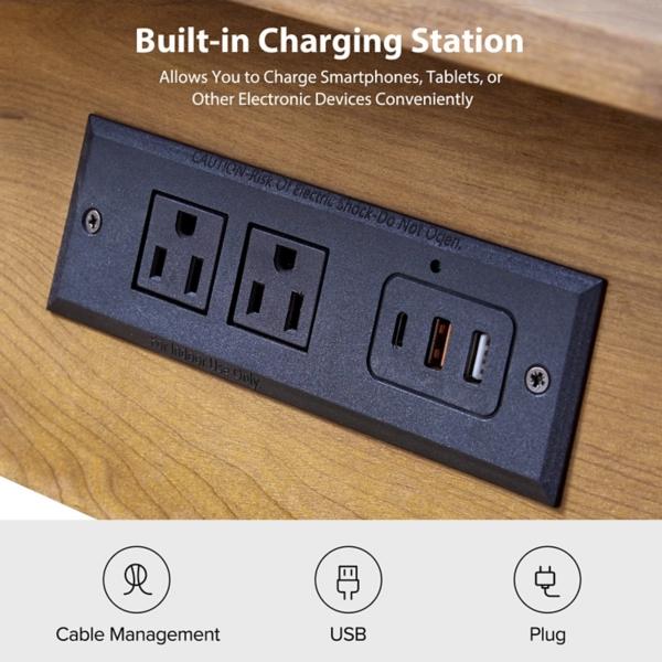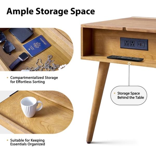 This Seadrift Brown Julian End Table seamlessly blends style and functionality! Showcasing a mid-century modern design, it features flared legs and striking hexagonal embellishments for an eye-catching look. End table measures 22W x 18.5D x 23.75H in. Crafted of manufactured wood Seadrift brown finish Features one (1) pull-out tray and one (1) drawer Integrated charging station Geometric drawer front Flared legs Weight: 35.72 lbs. Weight capacity: 100 lbs. Assembly required Not intended for commercial use Care: Wipe with a soft, dry cloth. This item is available at Kirklands.com only, not available in stores. Please note: this item cannot be shipped to APO/FPO addresses.