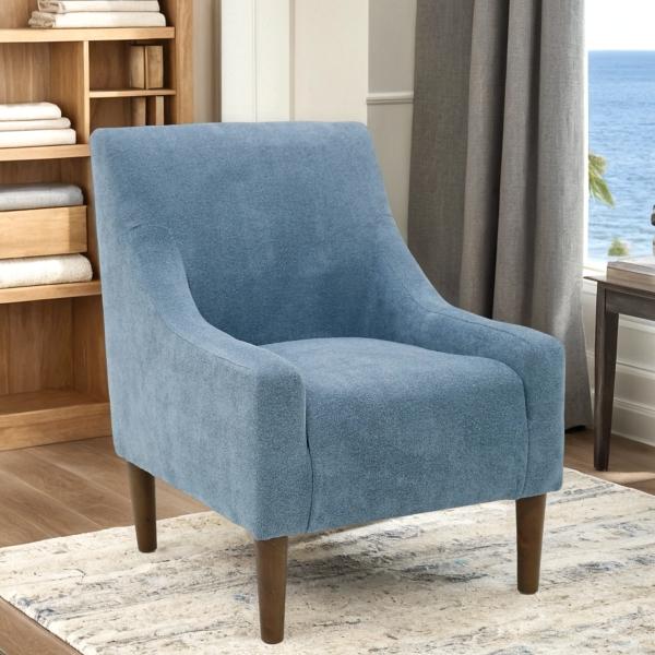 Refresh your space with this sleek Sky Blue Upholstered Shea Accent Chair! You’ll love the pop of color and modern style. It’s the perfect sophisticated addition to your living room or office! Accent chair measures 25.5W x 33D x 30H in. Crafted with a wood frame Upholstered in blue polyester and filled with high-density foam Walnut leg finish Features sloped armrests Seat dimensions: 17W x 21D x 17H in. Weight: 32 lbs. Weight capacity: 300 lbs. Crafted with sustainable materials Assembly required Made in the United States Not intended for commercial use Care: Spot clean. This item is available at Kirklands.com only, not available in stores. Please note: this item cannot be shipped to APO/FPO addresses.