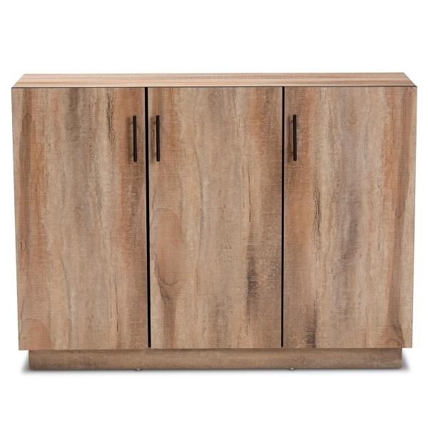 Keep your dining room looking chic and organized with our Stella Contemporary Oak 3-Door Cabinet! This storage-abundant piece is versatile and simple enough to complement any style. Cabinet measures 47.2L x 13.8W x 34.6H in. Crafted of wood composite Natural oak finish with black hardware Includes six (6) interior shelves Anti-topple kit included Assembly required Not intended for commercial use Care: Wipe with a soft, damp cloth. This item is available at Kirklands.com only, not available in stores. Please note: this item cannot be shipped to APO/FPO addresses. WARNING: This product can expose you to chemicals including formaldehyde and phthalate which are known to the state of California to cause cancer and birth defects or other reproductive harm. For more information go to www.P65Warnings.ca.gov.