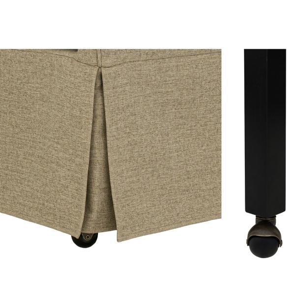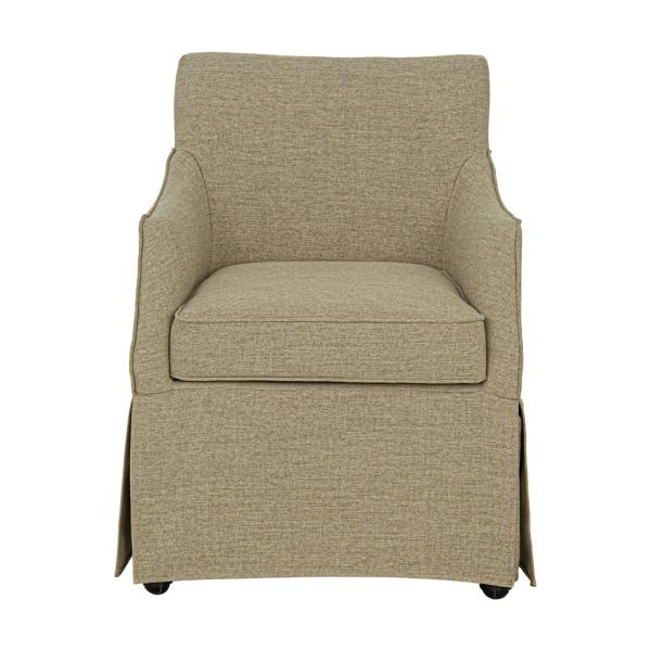 This Tan London Skirted Dining Chair with Casters combines style and comfort with soft curves, discreet casters, and plush dual-layer cushioning. A removable seat cushion adds convenience, while its versatile design suits dining rooms, offices, and more! Dining chair measures 25W x 26D x 34H in. Crafted with a solid wood frame Upholstered in tan polyester and filled with high-density foam Skirted design Hidden casters Plush dual-layer cushioning Martha Stewart Bedford Collection Seat measures 20W x 18.5D x 20H in. Weight: 35 lbs. Weight capacity: 300 lbs. Assembly required; see Info & Guides in the drop down below to view or print assembly info Not intended for commercial use Care: Blot spills immediately with a clean cloth. To prevent fading, keep fabric out of direct sunlight. This item is available at Kirklands.com only, not available in stores. Please note: this item cannot be shipped to APO/FPO addresses.