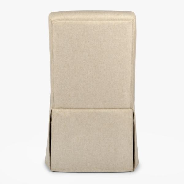 Bring elegance to the table with our Taupe Skirted Dining Chair with Castors! This traditional and sophisticated skirted dining chair is perfect for elevating your dining room. Its castor wheels make moving this chair a breeze! Dining chair measures 21.25W x 26.8D x 38.5H in.; seat height: 18 in. Crafted with a wooden frame Upholstered in taupe performance fabric and filled with high-density foam Features a skirted design Castor wheels on each leg Weight: 10 lbs. Weight capacity: 225 lbs. No assembly required Not intended for commercial use Care: Spot clean. This item is available at Kirklands.com only, not available in stores.