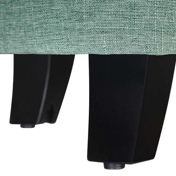Make the most of your space with this Teal Upholstered Eliza Round Storage Ottoman! This chic ottoman features hidden storage space to keep your room organized. From extra seating to a stylish foot rest, this ottoman has your comfort and style in mind! Ottoman measures 17H x 19.75 in. in diameter Crafted with a wood frame Upholstered in teal fabric with high-density foam Black wood finish Features interior storage space Button-tufted design Assembly: Attach feet. Not intended for commercial use Care: Wipe with a soft, dry cloth. This item is available at Kirklands.com only, not available in stores. Please note: this item cannot be shipped to APO/FPO addresses.
