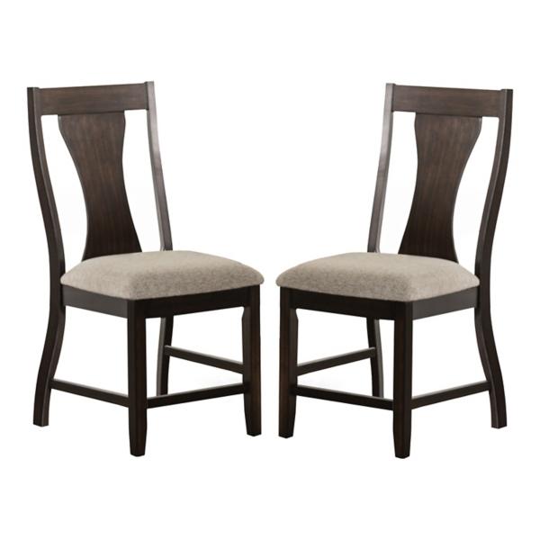 Give your dining room an elegant touch with these Upholstered Walnut Kix Dining Chairs! With their curved, open back design and dark walnut finish, you'll love how they elevate your home. Set includes two (2) dining chairs Each chair measures 23W x 17.5D x 28H in.; seat height: 18 in. Crafted of wood Upholstered in beige fabric and filled with high-density foam Walnut finish Features an open back design Subtly curved back legs Weight capacity: 250 lbs. Assembly required Not intended for commercial use Care: Wipe with a soft, dry cloth. This item is available at Kirklands.com only, not available in stores. Please note: this item cannot be shipped to APO/FPO addresses.