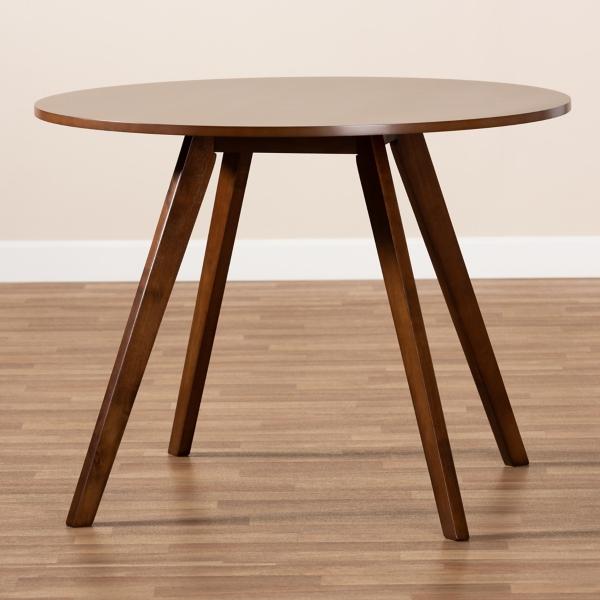 Elevate your dining space with this Walnut Wood Alana Round Dining Table! This mid-century modern style dining table features a rich walnut finish and splayed legs for a sophisticated, stylish look. Dining table measures 29.5H x 39.4 in. in diameter Crafted of wood Walnut finish Round shape Features splayed legs Accommodates up to four (4) people Weight: 33.1 Assembly required Not intended for commercial use Care: Wipe with a soft, dry cloth. This item is available at Kirklands.com only, not available in stores. Please note: this item cannot be shipped to APO/FPO addresses.