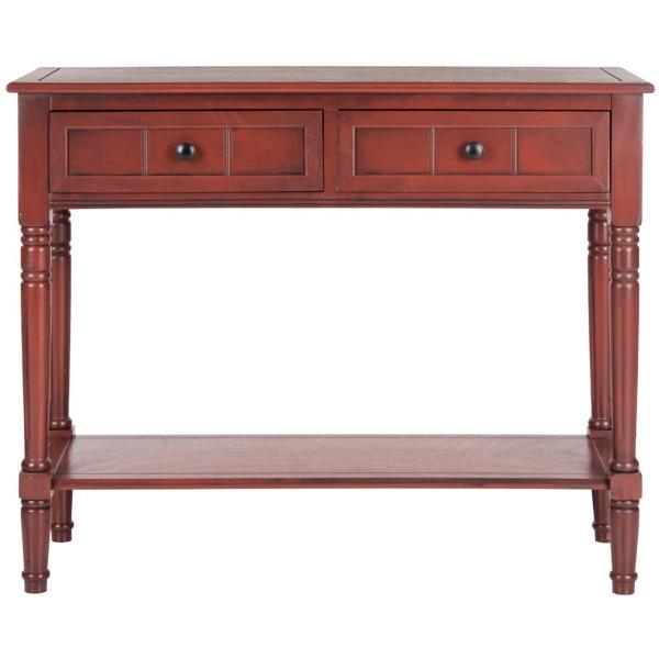 Infuse some farmhouse charm into your home with this Warm Red Gray 2-Drawer Samantha Console Table! This table features classic turned legs and carved details that give it a rustic flair. You'll love the storage space and style in your entryway or living room! Console table measures 35.8W x 13.8D x 29.5H in. Crafted of pine Warm red finish Features two (2) drawers and one (1) lower shelf Shelf measures 34.6W x 12.4D x 15.7H in. Storage space measures 15.2W x 11D x 4.7H in. Weight: 31 lbs. Weight capacity: 50 lbs. Assembly required Not intended for commercial use Care: Dust with a soft, dry cloth. This item is available at Kirklands.com only, not available in stores. Please note: this item cannot be shipped to APO/FPO addresses.