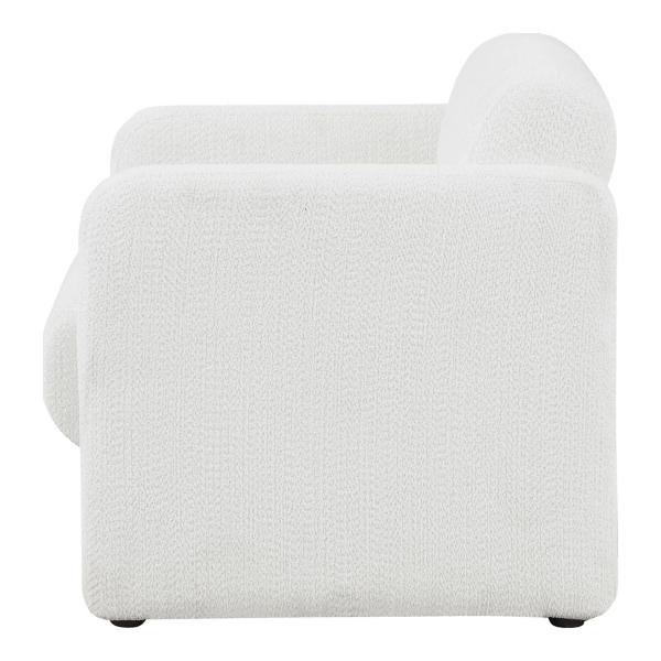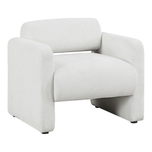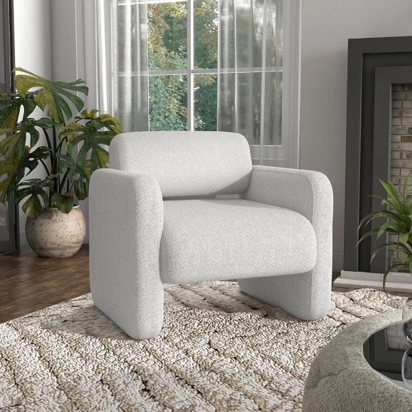 Transform your home seating with this White Boucle Modern Accent Chair. With a deep-seat design and soft, boucle texture, this piece combines contemporary style with comfort. It will quickly become your favorite seat! Overall dimensions Width: 32" Depth: 30.63" Height: 29.5" Seat height: 18.5" Crafted with a wood and plywood frame Upholstered in white polyester Boucle texture Foam fill Fabric features a pebbly tweed weave pattern Modern, deep-seat design Black, plastic legs Weight: 59 lbs. Weight capacity: 250 lbs. Some assembly required; no tools needed Not intended for commercial use Care: Spot clean only. This item is available at Kirklands.com only, not available in stores. Please note: this item cannot be shipped to APO/FPO addresses. WARNING: This product can expose you to chemicals including formaldehyde (gas), which are known to the state of California to cause cancer and birth defects or other reproductive harm. For more information go to www.P65Warnings.ca.gov.