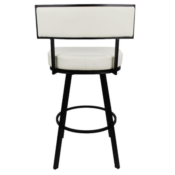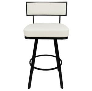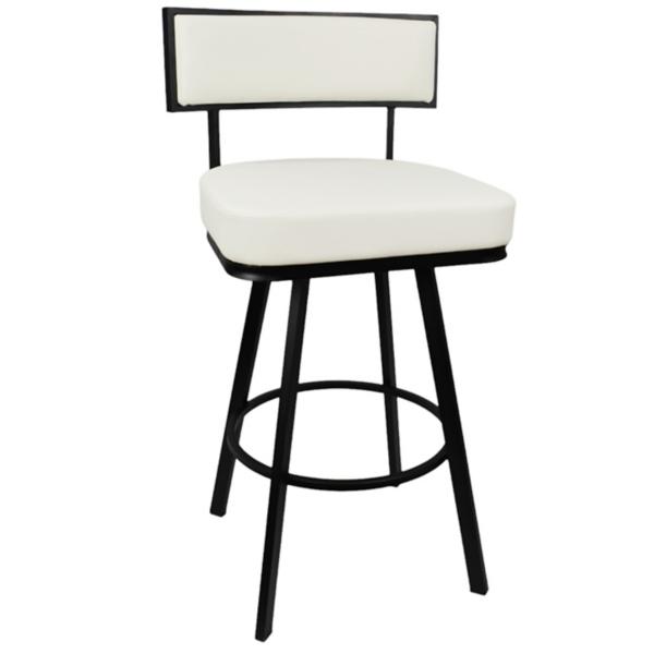 Refine your kitchen or bar space with the sleek sophistication of this White Faux Leather Zenon Swivel Bar Stool! Designed with clean lines and modern appeal, this stool delivers a perfect blend of comfort and minimalist design. Stool measures 21.85W x 20.47D x 41.75H in.; seat height: 30 in. Crafted of metal Upholstered in white faux leather and filled with high-density foam Black metal finish Features 360 degree capability Fits 42 inch tall counters Weight capacity: 300 lbs. Assembly required Not intended for commercial use Care: Wipe with a soft, dry cloth. This item is available at Kirklands.com only, not available in stores. Please note: this item cannot be shipped to APO/FPO addresses.