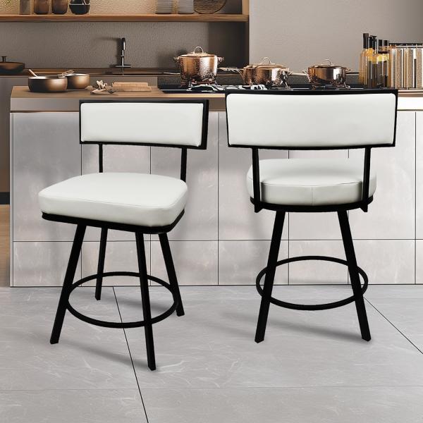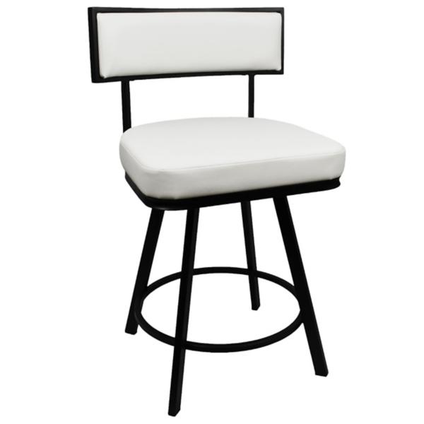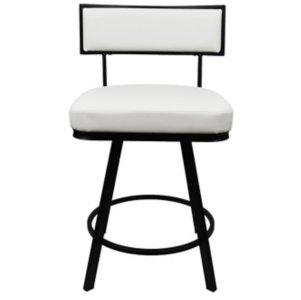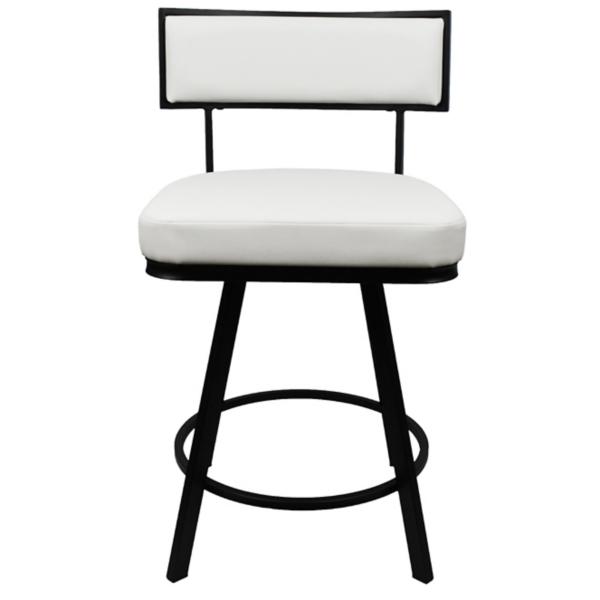 Refine your kitchen or bar space with the sleek sophistication of this White Faux Leather Zenon Swivel Counter Stool! Designed with clean lines and modern appeal, this stool delivers a perfect blend of comfort and minimalist design. Stool measures 21.85W x 22D x 36.02H in.; seat height: 24 in. Crafted of metal Upholstered in white faux leather and filled with high-density foam Black metal finish Features 360 degree capability Fits 36 inch tall counters Weight capacity: 300 lbs. Assembly required Not intended for commercial use Care: Wipe with a soft, dry cloth. This item is available at Kirklands.com only, not available in stores. Please note: this item cannot be shipped to APO/FPO addresses.