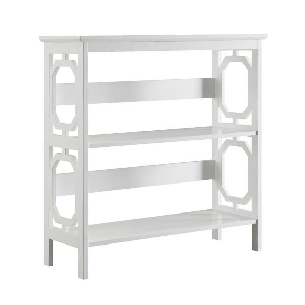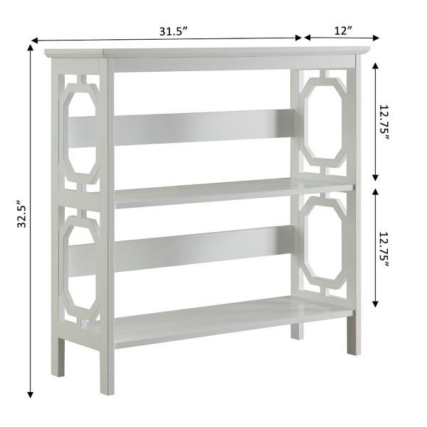 Add a touch of modern charm to your space with this White Geometric 3-Tier Bookcase! Designed to blend seamlessly into a variety of interiors, this three-tier bookcase offers both style and functionality. Bookcase measures 31.5W x 11.75D x 32.5H in. Crafted of MDF White finish Features three (3) tiers of shelving Geometric cut-out designs Weight: 26 lbs. Weight capacity: 11 lbs. per shelf Assembly required Not intended for commercial use Care: Wipe with a soft, dry cloth. This item is available at Kirklands.com only, not available in stores. Please note: this item cannot be shipped to APO/FPO addresses.