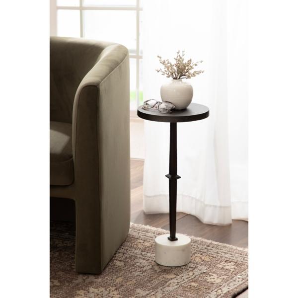 Showcase your nightly drink or a favorite houseplant with our stunning White Marble and Black Metal Round Accent Table. The two-tone finish effortlessly elevates your home decor by aligning well with various decor styles. Accent table measures 22H x 10 in. in diameter Crafted of marble and aluminum Black top and leg finish White marble base finish Round tabletop Weight: 9.7 lbs. Weight capacity for top: 7 lbs. Assembly required Not intended for commercial use Care: Dust with a soft, dry cloth. This item is available at Kirklands.com only, not available in stores. Please note: this item cannot be shipped to APO/FPO addresses. WARNING: Cancer and Reproductive Harm - For more information go to www.P65Warnings.ca.gov.