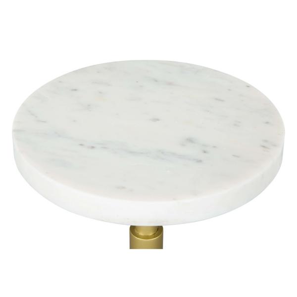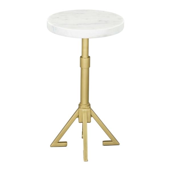 Add a touch of modern elegance to your space with this chic White Marble and Gold Metal Maurice End Table! Perfect for holding drinks, displaying décor, or serving as a stylish side table, it’s an ideal piece for any space. End table measures 22H x 11 in. in diameter Crafted of marble and metal Gold metal finish Round shape Features a tripod design Weight: 15 lbs. Weight capacity: 45 lbs. Assembly required Not intended for commercial use Care: Wipe with a soft, dry cloth. This item is available at Kirklands.com only, not available in stores. Please note: this item cannot be shipped to APO/FPO addresses.