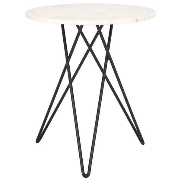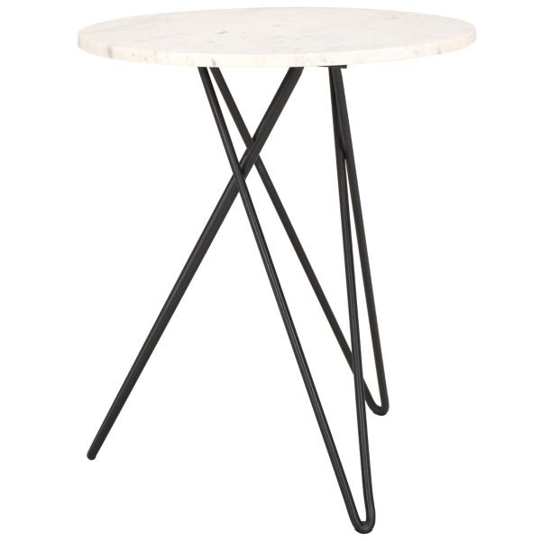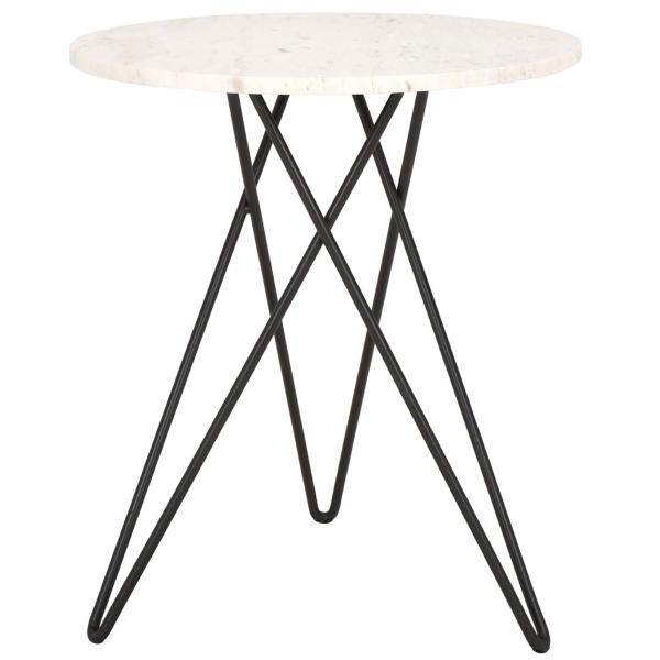 Mid-century chic meets modern sleek in this White Marble Iron Maisie Accent Table! Flaunting a dynamic sense of motion in its retro hairpin legs, its glamorous white marble top elevates its aesthetic prowess. Accent table measures 20.3H x 17 in. in diameter Crafted of iron Black finish Round shape Features a marble tabletop Hairpin legs Weight: 20 lbs. Weight capacity: 15 lbs. No assembly required Not intended for commercial use Care: Wipe with a soft, dry cloth. This item is available at Kirklands.com only, not available in stores. Please note: this item cannot be shipped to APO/FPO addresses.