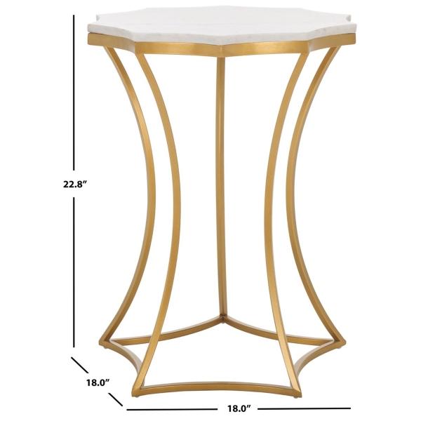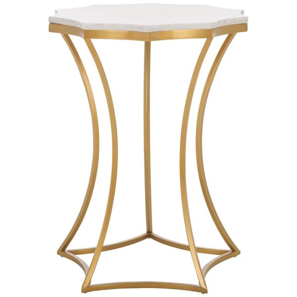 Elevate your space with this White Marble Star Gold Accent Table! This table features a chic star design and gold finish, perfect for a glam statement piece in your living room or bedroom. Accent table measures 18H x 22.8 in. in diameter Crafted with a metal base Gold finish Star shape Features a white marble tabletop Open base design Weight: 21 lbs. Weight capacity: 50 lbs. No assembly required Not intended for commercial use Care: Wipe with a soft, dry cloth. This item is available at Kirklands.com only, not available in stores. Please note: this item cannot be shipped to APO/FPO addresses.