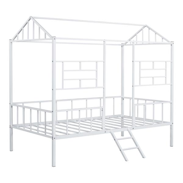 This White Metal House Twin Loft Bed features a playful house-themed design with a charming roof and side frames! With a small attached ladder for easy access, it’s both practical and fun, creating a cozy, imaginative space for your child. Loft bed measures 78L x 41.5W x 64H in. Crafted of metal White finish Features a house design Accommodates a standard twin mattress; mattress not included Includes a small attached ladder for convenient access Mattress-ready setup for easy and quick assembly Weight: 53 lbs. Weight capacity: 300 lbs. Assembly required; see Info & Guides in the drop down below to view or print assembly info Not intended for commercial use Care: Wipe with a soft, dry cloth. This item is available at Kirklands.com only, not available in stores. Please note: this item cannot be shipped to APO/FPO addresses.