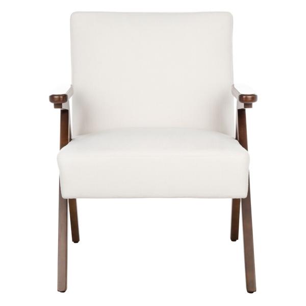 Revamp your space with this retro-inspired White Mid-Century Modern Sadie Accent Chair! This stylish chair features a classic A-frame base in a walnut finish with soft white linen cushions for a chic and comfortable addition to your home. Chair measures 27.6W x 29.1D x 34.3H in.; seat height: 18.9 in. Crafted with a wood frame Upholstered in a polyester and nylon linen blend and filled with high-density foam Walnut wood leg finish White upholstery finish Features an A-frame design Weight: 25 lbs. Weight capacity: 275 lbs. Some assembly required; see Info & Guides in the drop down below to view or print assembly instructions Not intended for commercial use Care: Spot clean. This item is available at Kirklands.com only, not available in stores. Please note: this item cannot be shipped to APO/FPO addresses.