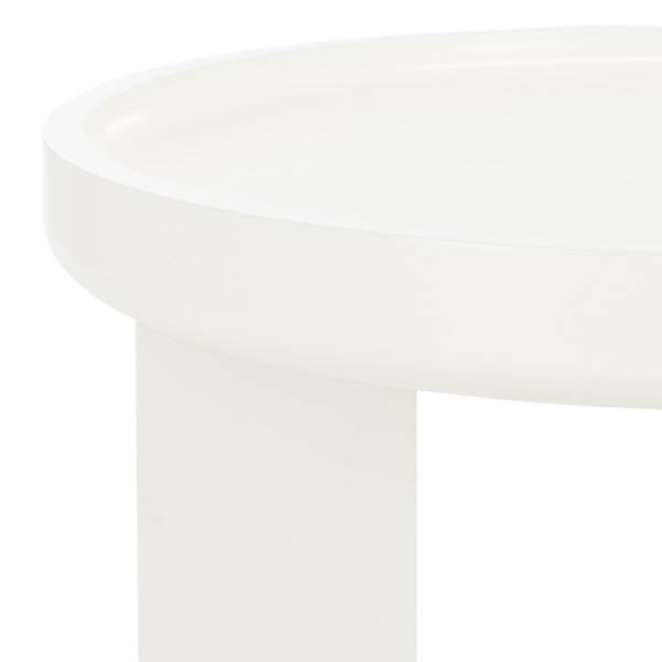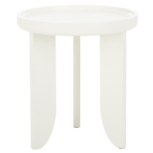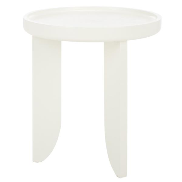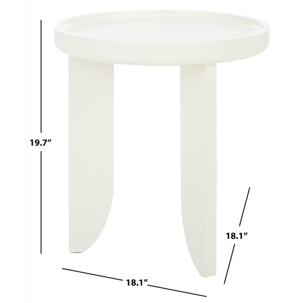 This White Wood Elnora Accent Table features a round and sculpted tabletop perched upon three curved legs. It serves as a welcoming and versatile addition to your bedside, sofa, or armchair! Accent table measures 19.7H x 18.1 in. in diameter Crafted of pine and MDF White finish Features curved legs and raised tabletop edges Round shape Weight: 12 lbs. Weight capacity: 50 lbs. Assembly required; see Info & Guides in the drop down below to view or print assembly info Not intended for commercial use Care: Wipe with a soft, dry cloth. This item is available at Kirklands.com only, not available in stores. Please note: this item cannot be shipped to APO/FPO addresses.