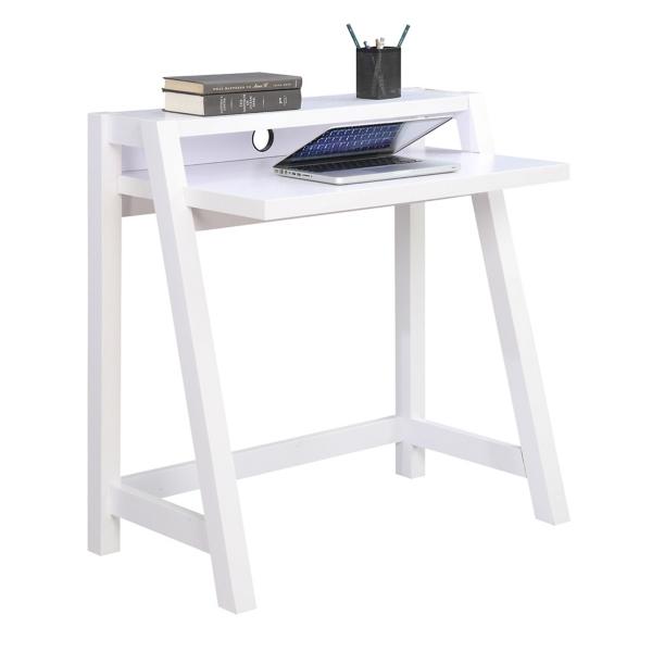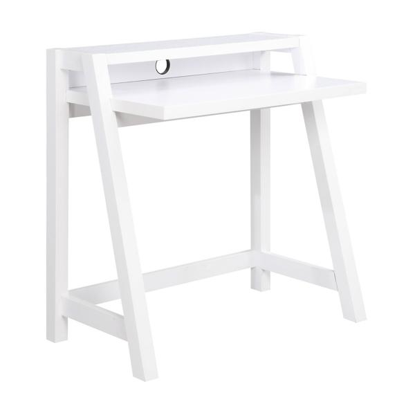 Organize your space with this White Wood Lilly 2-Tier Desk! Featuring a top shelf for office supplies or décor and a lower shelf for your laptop, this desk is the perfect functional and stylish addition to your home. Desk measures 34.5W x 22D x 35H in. Crafted of manufactured wood and finished with detailed woodgain melamine White finish Features two (2) tiers of shelving Cable management hole Weight: 47 lbs. Top weight capacity: 50 lbs.; shelf capacity: 10 lbs. Assembly required Not intended for commercial use Care: Wipe with a soft, dry cloth. This item is available at Kirklands.com only, not available in stores. Please note: this item cannot be shipped to APO/FPO addresses.