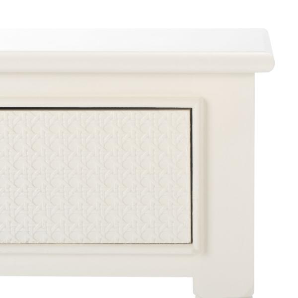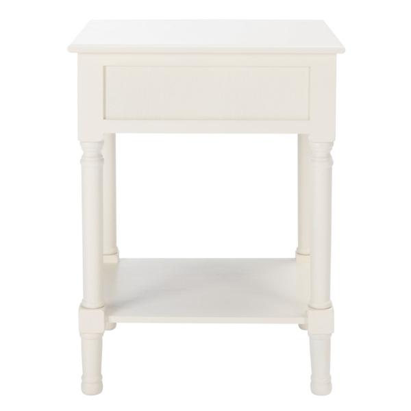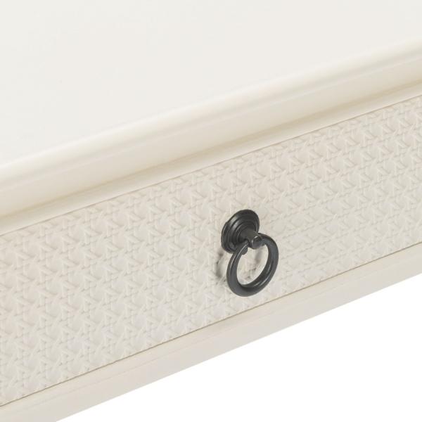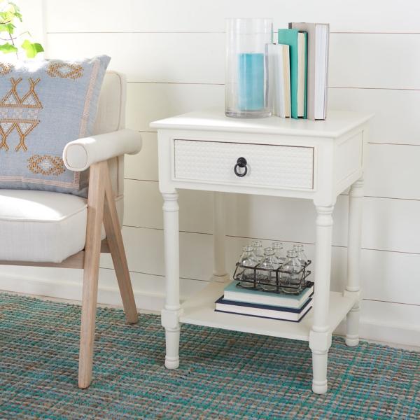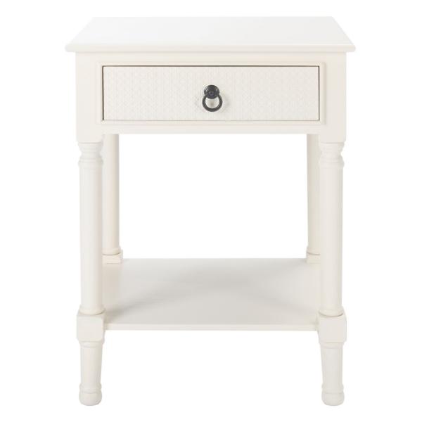 Traditional elegance is redefined in this White Wood Natalia 1-Drawer End Table! Featuring timeless carved details in a clean white finish, this table is ideal beside an armchair or in pairs framing a sofa. End table measures 19W x 15.8D x 26H in. Crafted of pine wood and MDF White finish Features one (1) drawer and one (1) lower shelf Accented with a woven drawer front pattern Antique black metal drawer pull ring Drawer measures 13.3W x 10.3D x 3.6H in. Shelf measures 14.3W x 11.2D x 12.4H in. Weight: 17.6 lbs. Weight capacity: 40 lbs. Assembly required; see Info & Guides in the drop down below to view or print assembly info Not intended for commercial use Care: Wipe with a soft, dry cloth. This item is available at Kirklands.com only, not available in stores. Please note: this item cannot be shipped to APO/FPO addresses.