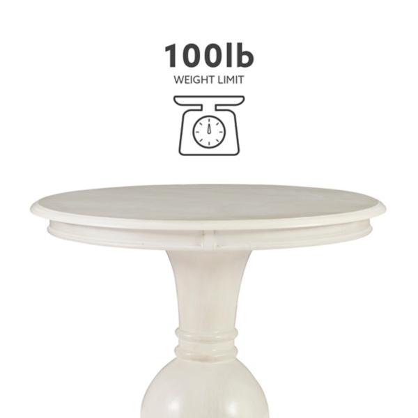 Our White Wood Round Base Side Table looks lovely in any style space! You’ll love the unique, eye-catching round base of this wooden accent table. Table measures 26L x 26W x 26H in. Crafted of wood and wood composite Off white finish Round tabletop Features stepped base and turned pedestal design Weight: 32.4 lbs. Weight capacity: 100 lbs. Some assembly required; see Info & Guides below to view or print assembly instructions. Not intended for commercial use Made in Vietnam Care: Dust with a soft, dry cloth. This item is available at Kirklands.com only, not available in stores. Please note: this item cannot be shipped to APO/FPO addresses.