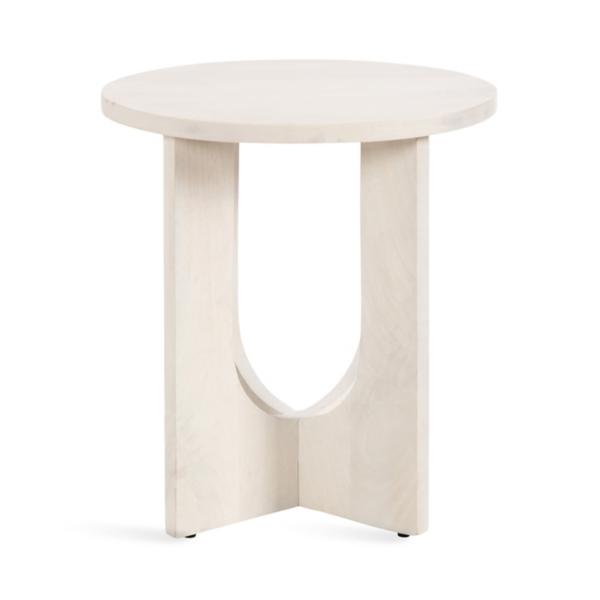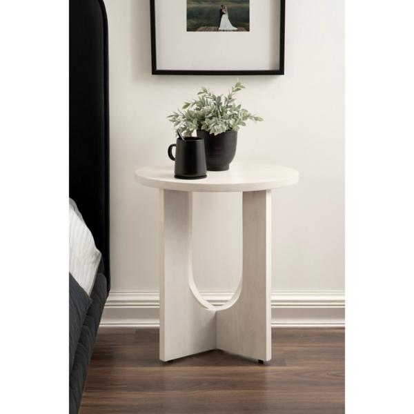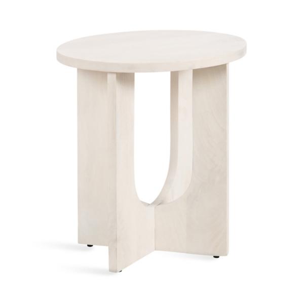 Showcase your modern style with this White Wood Sureda Oval Accent Table! This sophisticated accent table is fantastic for creating a stunning and eye-catching statement in your living room. Accent table measures 20L x 16W x 22H in. Crafted of mango wood White finish Oval shape Features a geometric base Weight: 14 lbs. Weight capacity: 50 lbs. Some assembly required Not intended for commercial use Care: Wipe with a soft, dry cloth. This item is available at Kirklands.com only, not available in stores. Please note: this item cannot be shipped to APO/FPO addresses.