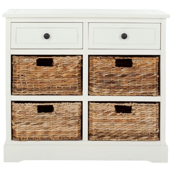 Function meets style with this White Wood Woven Baskets Cabinet. Not only does this piece provide ample storage space, but its modern farmhouse style brings a quaint look to your space! You'll love how it completes your space! Cabinet measures 29.9L x 13W x 26H in. Crafted of pine wood White finish Features two (2) drawers and four (4) wicker baskets Natural basket finish Weight capacity: 75 lbs. Assembly required Not intended for commercial use Care: Dust with a soft, dry cloth. This item is available at Kirklands.com only, not available in stores. Please note: this item cannot be shipped to APO/FPO addresses. WARNING: This product can expose you to chemicals including wood dust, which is known to the state of California to cause cancer and birth defects or other reproductive harm. For more information go to www.P65Warnings.ca.gov.