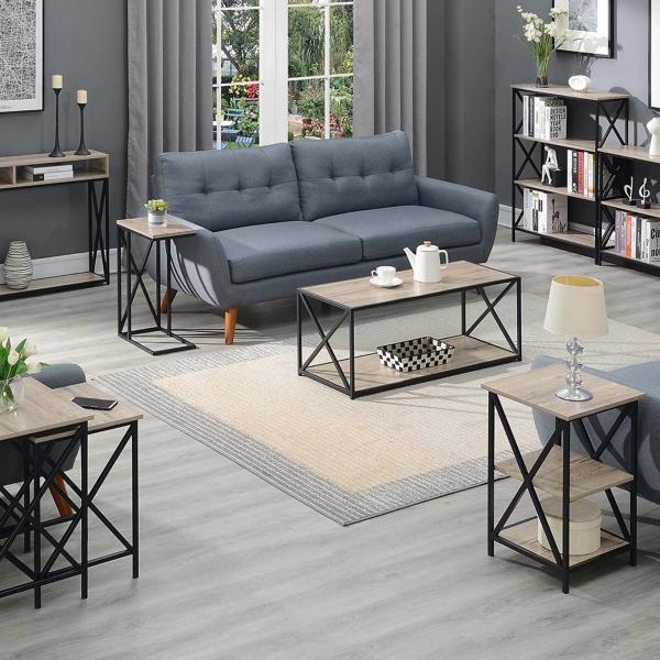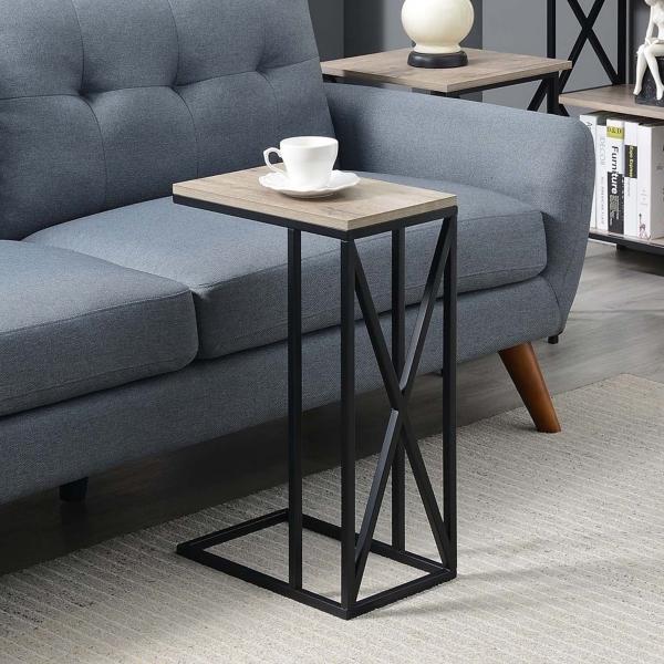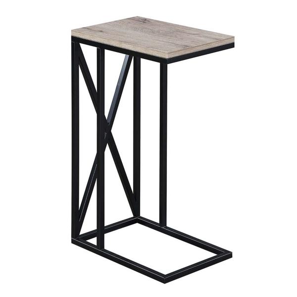 The modern style of this Whitewash Tucson C-Table is convenient for any space! With its C-shape, this table can be used in a variety of ways, whether you need it as a laptop desk for work or for snacks during movie night! C-table measures 15.75L x 10W x 24H in.; weighs 9 lbs. Crafted of powder-coated metal and particle board Black metal finish Whitewash top finish Features a "C" shape Accented with an X frame design Weight capacity: 20 lbs. Some assembly required Not intended for commercial use Care: Dust with a soft, dry cloth. This item is available at Kirklands.com only, not available in stores. Please note: this item cannot be shipped to APO/FPO addresses.