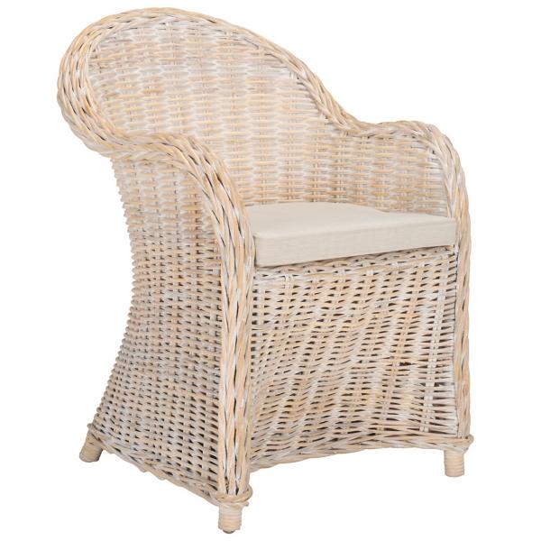 Add a casual coastal feel to your space with this White Wicker Myra Accent Chair! You'll love how the white rattan finish gives this chair a fresh, breezy touch, perfect for your living room or sunroom. Chair measures 24W x 26D x 35H in.; seat height: 17.3 in. Crafted with a kubu rattan frame Upholstered in cotton and filled with high-density foam White wash finish White upholstery finish Features a curved design Club chair silhouette Weight: 17 lbs. Weight capacity: 275 lbs. No assembly required Not intended for commercial use Care: Spot clean. This item is available at Kirklands.com only, not available in stores. Please note: this item cannot be shipped to APO/FPO addresses.