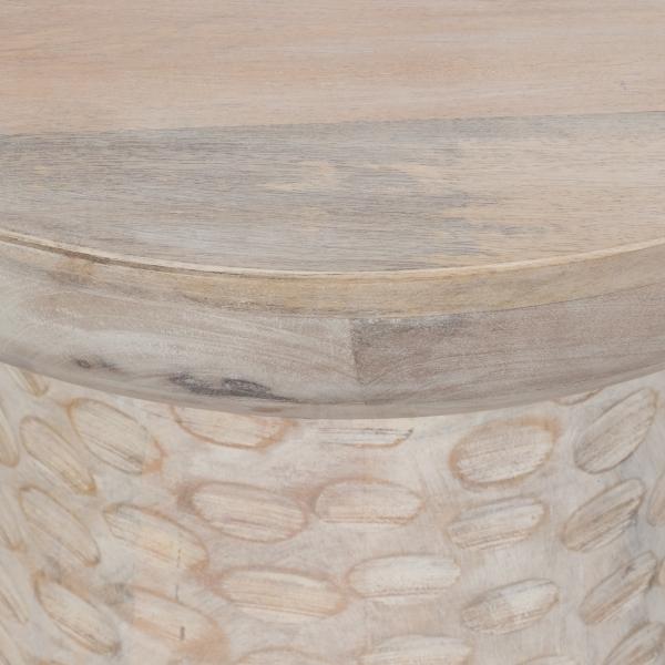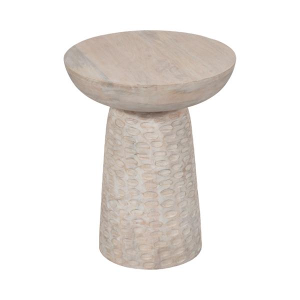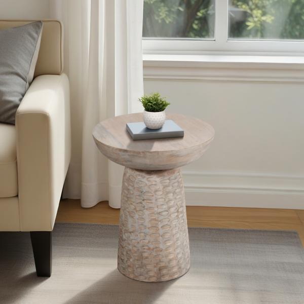 Upgrade the elegance of your modern home of with our Whitewash Wood Grooved Base Accent Table! Its distressed look will add a unique touch to the side of your couch. Overall dimensions Width: 16 in. Depth: 16 in. Height: 20 in. Crafted of wood Whitewashed finish Pedestal shape Features a grooved base Weight: 34.5 lbs. Some assembly required Not intended for commercial use Care: Dust with a soft, dry cloth. This item is available at Kirklands.com only, not available in stores. Please note: this item cannot be shipped to APO/FPO addresses.