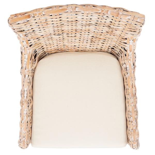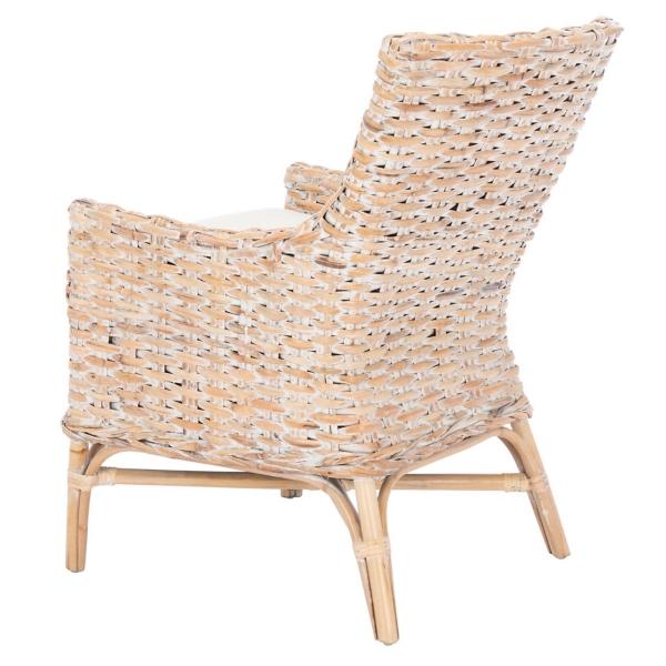 Whether you want to go boho chic or coastal charm, this Whitewashed Rattan Cristen Accent Chair will complement your space beautifully! This chair is perfect for a room drenched with sunlight for a casual yet sophisticated look. Chair measures 24W x 27.6D x 35H in.; seat height: 16.93 in. Crafted with a rattan frame Cushion upholstered in 60% cotton and 40% polyester with a foam fill Whitewash rattan finish White cushion finish Features a slightly reclined backrest Weight: 18.41 lbs. Weight capacity: 275 lbs. No assembly required Not intended for commercial use Care: Dust weekly using a soft, clean cloth slightly dampened with distilled water. Blot spills immediately with a soft, clean absorbent dry cloth.. This item is available at Kirklands.com only, not available in stores. Please note: this item cannot be shipped to APO/FPO addresses.
