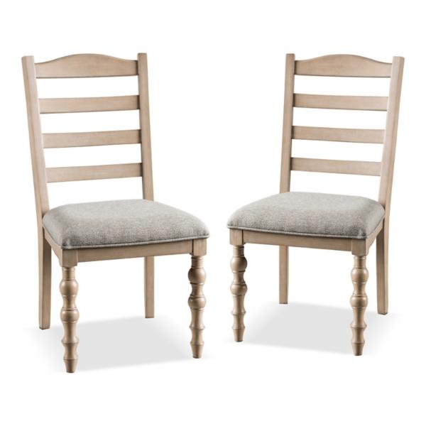 Bring modern farmhouse charm to your home with these Whitewashed Wood Corrin Dining Chairs! These chairs combine traditional details with a sleek design to elevate your dining space. Set includes two (2) dining chairs Each chair measures 18W x 22D x 39H in.; seat height: 19 in. Crafted of rubberwood Whitewash finish Upholstered in gray performance polyester and filled with high-density foam Features slatted backrest design Spindle front legs Weight capacity: 250 lbs. Assembly required Not intended for commercial use Care: Spot clean. This item is available at Kirklands.com only, not available in stores. Please note: this item cannot be shipped to APO/FPO addresses.