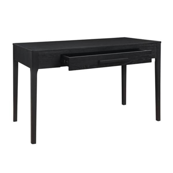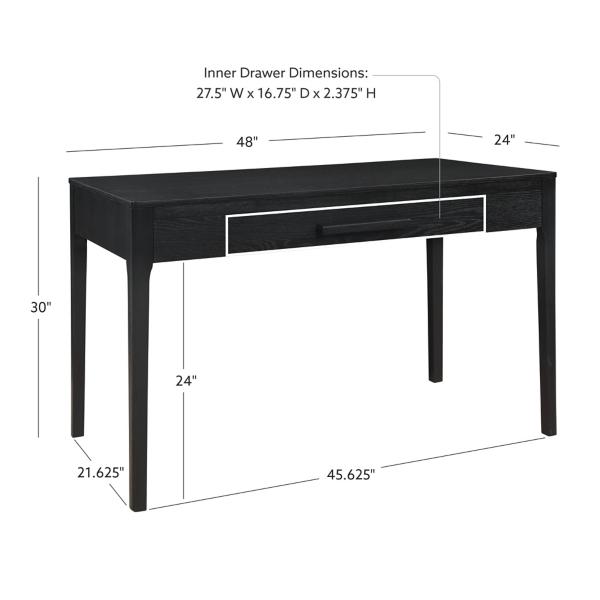 Lay the groundwork for efficient workdays with this Wilcox Black Desk. The streamlined silhouette hints at a midcentury modern aesthetic, while the oak veneers offer a dash of rustic charm. Desk measures 48L x 24W x 30H in. Crafted of wood Black lacquer finish Features a single drawer Top weight capacity: 50 lbs. Drawer weight capacity: 10 lbs. Care: Dust with a soft, dry cloth. WARNING: This product can expose you to chemicals including DEHP which is known to the state of California to cause cancer and birth defects or other reproductive harm. For more information go to www.P65Warnings.ca.gov.