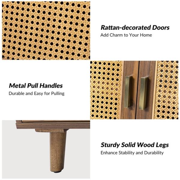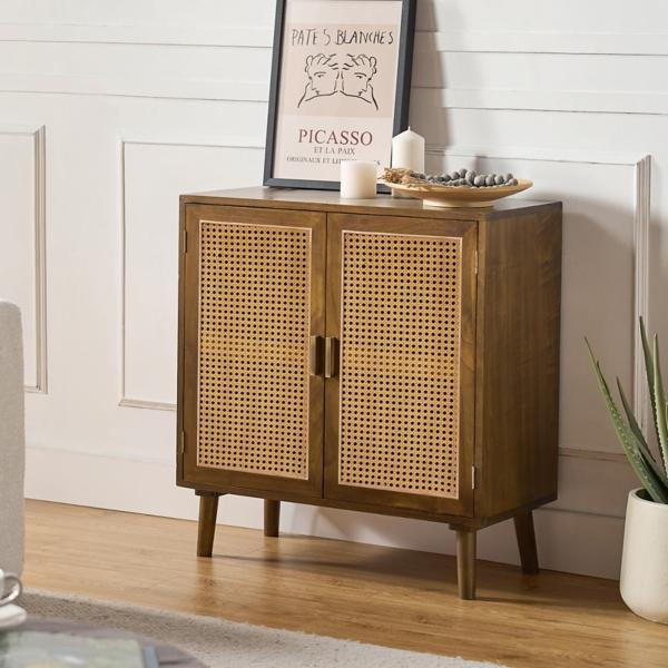 This Wyoming 2 Door Accent Cabinet blends timeless design with everyday practicality. Whether you're looking for extra storage or a statement piece, this cabinet delivers both form and function with ease. Cabinet measures 28.7W x 13.5D x 30H in. Crafted of solid and manufactured wood Brown finish Features two (2) cabinet doors with interior shelving Accented with rattan insets Interior measures 26.8W x 11.8D x 12H in. Weight: 37 lbs. Weight capacity: 110 lbs. Assembly required Not intended for commercial use Care: Wipe with a soft, dry cloth.. This item is available at Kirklands.com only, not available in stores. Please note: this item cannot be shipped to APO/FPO addresses.